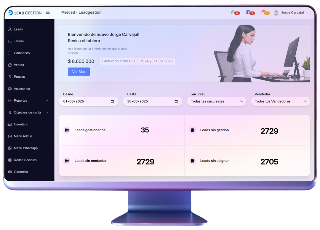 Nuestro equipo le mostrará en minutos cómo aprovechar Leadgestion para ahorrar tiempo, automatizar tareas y cerrar más ventas desde un solo lugar.